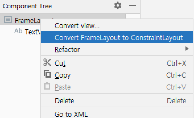 그리고fragment의 레이아웃을 constraintLayout으로 바꿔준다